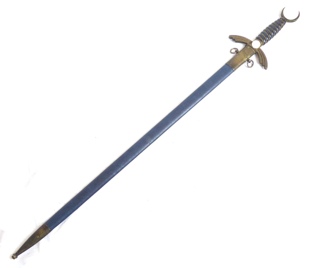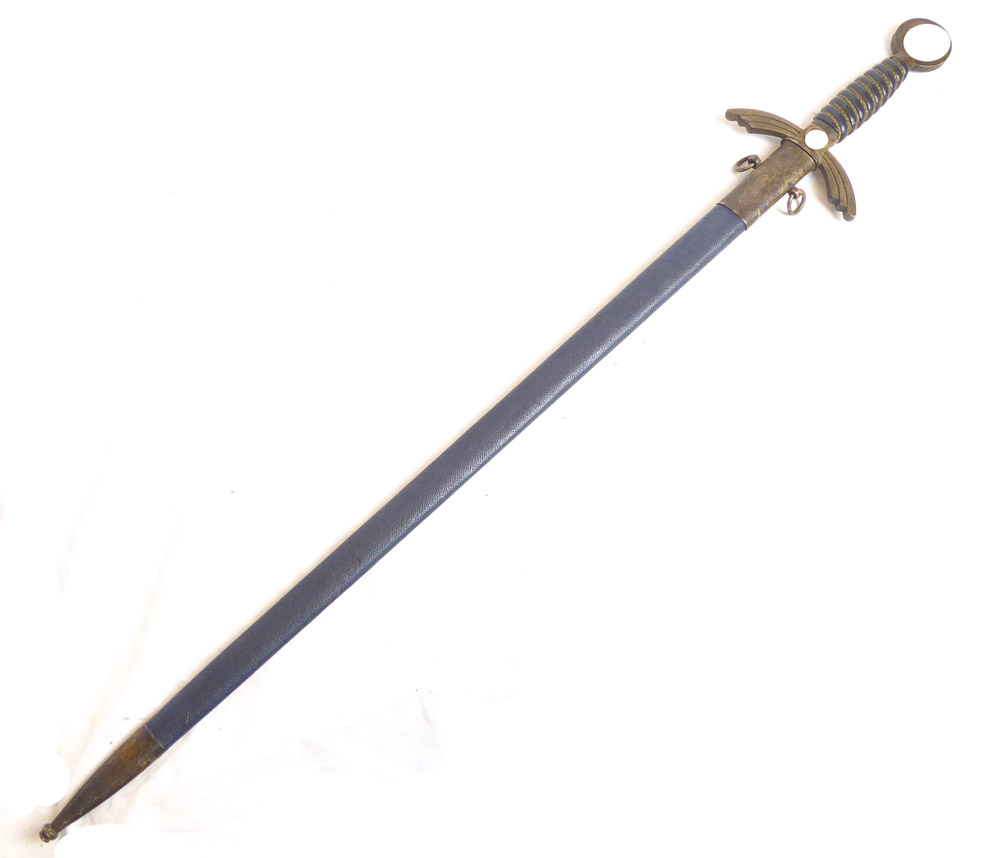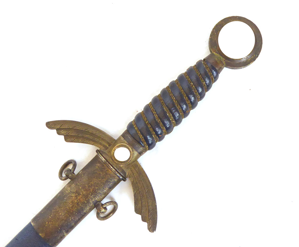 Luftwaffenschwert für Offiziere in früher schwerer Neusilber Ausführung. Sehr schöner aber leicht getragener Zustand, mit kleinen Fehlern aber mit Charm, sehr schöne Patina auf den Metallbeschlägen.