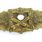 Close combat clasp in gold by FLL (Friedrich Linden Lüdenscheid) made of gold-plated zinc, good, lightly worn condition, the gilding preserved approx. 97%, slight traces of oxidation present, the magnetic plate slightly stained, just typical for FLL close combat clasps.