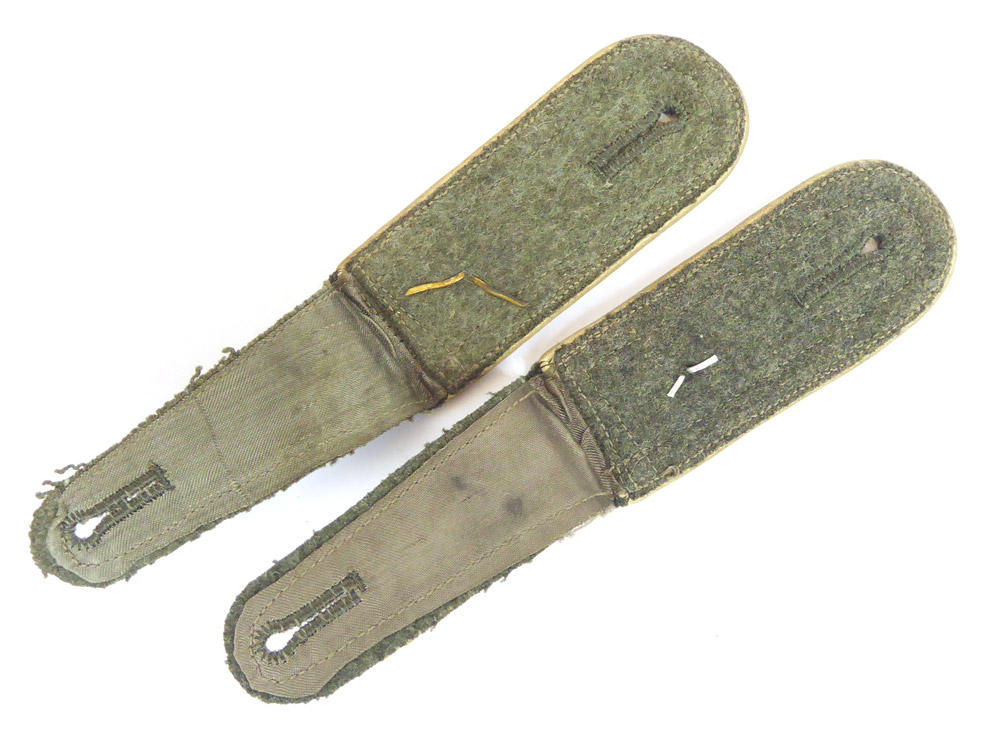 Paar Schulterklappen für einen Feldwebel der Infanterie, gefertigt um 1943 mit mausgrauer Litze, sehr schöner nur ganz leicht getragener Zustand.