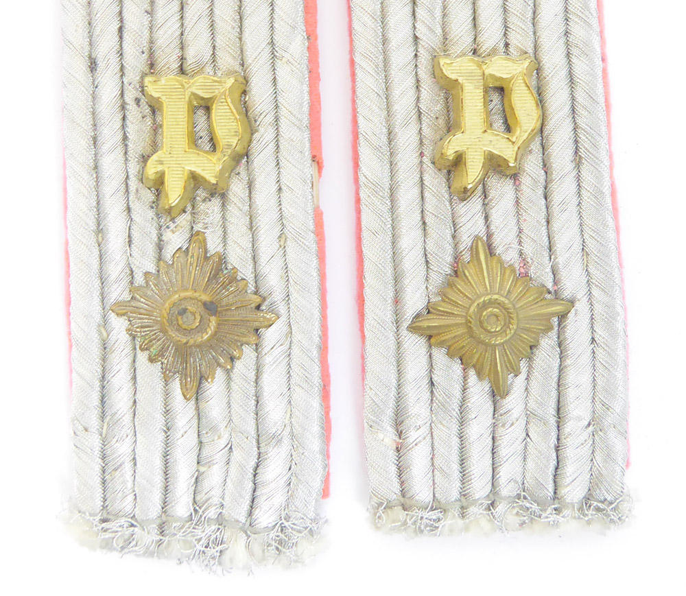 Paar Schulterklappen für einen Oberleutnant der Panzerjäger, schöner leicht getragener Zustand, zum einnähen mit glänzendem Geflecht für einen Waffenrock oder geschönte Feldbluse.