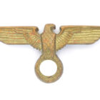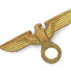 Parteilicher Mützenadler gefertigt aus vergoldetem Cupal, drei Splinte vorhanden, sehr schöner leicht getragener Zustand, wie abgebildet.