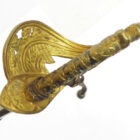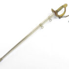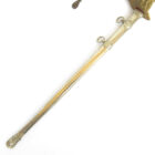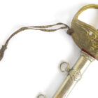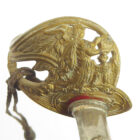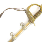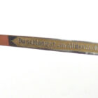 Vernickelte Klinge, beidseitig mit Schriftzug „Du schweistest in Wettern Germanias Schwert, Du schufest das Reich uns im Weltall geehrt, Du schlangst um Alldeutschland ein ehernes Band. Willkommen im bergischen Land!“. Messinggefäß, im Korb die geflügelte Germania, die einen preußischen Adler krönt, die Knaufkappe mit einer Krone verziert. Nickelscheide mit Messingbeschlägen, zwei Ringbänder, gute Erhaltung mit leichten altersbedingten gebrauchspuren wie abgebildet. Gesamtlänge ca. 300 mm.