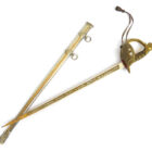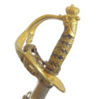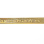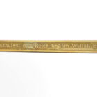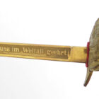 Nickel-plated blade, with the inscription on both sides „You welded Germania’s sword in Wettern, you created the empire that honored us in space, you wrapped a bronze band around all of Germany. Welcome to the Bergisches Land!“. Brass hilt, in the basket the winged Germania crowning a Prussian eagle, the pommel cap decorated with a crown. Nickel scabbard with brass fittings, two ring bands, good condition with slight signs of age-related wear as shown. Total length approx. 300 mm.