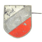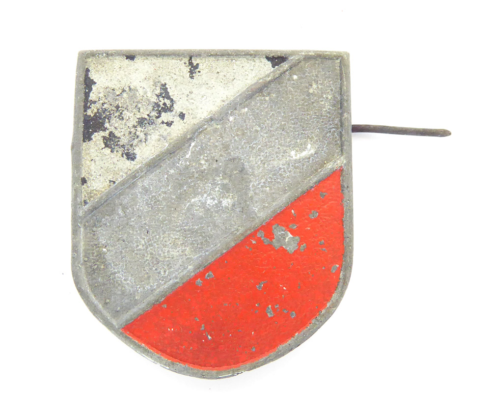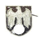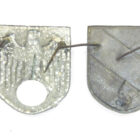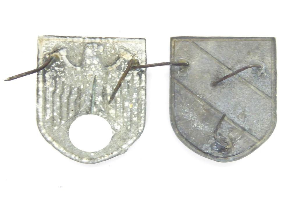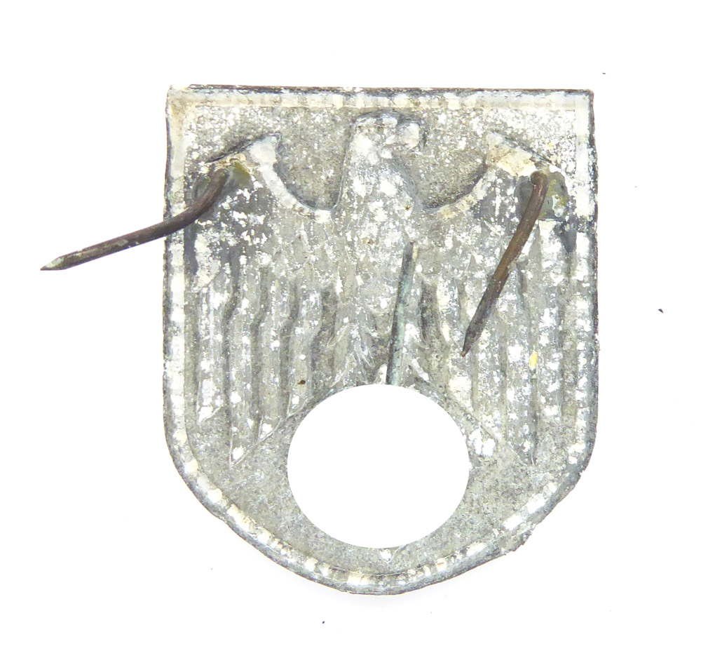 Satz Tropenhelm Embleme der Wehrmacht, gefertigt aus Zink lackiert in schönem Zustand, mit eiern herrlichen Patina wie abgebildet, die Splinte komplett intakt, wie zu sehen.