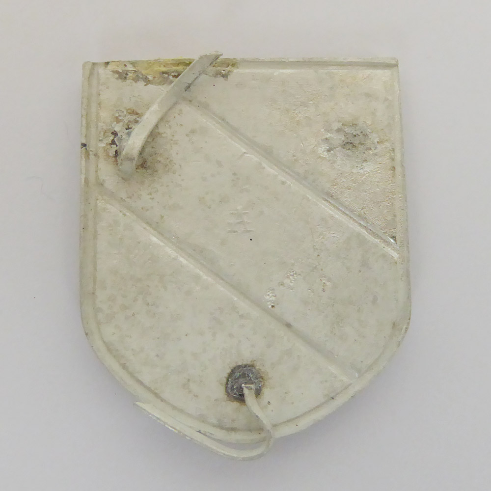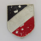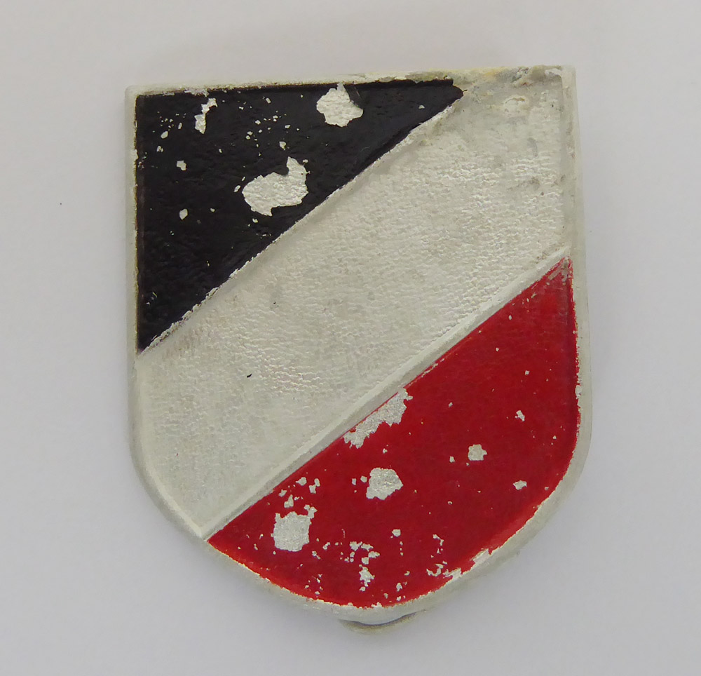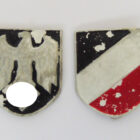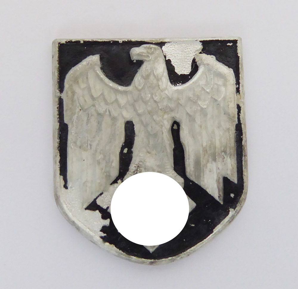 Satz Tropenhelm Embleme der Wehrmacht, gefertigt aus Aliminium lackiert in schönem Zustand, mit eiern herrlichen Patina wie abgebildet, die Splinte teilweise defekt, wie zu sehen.
