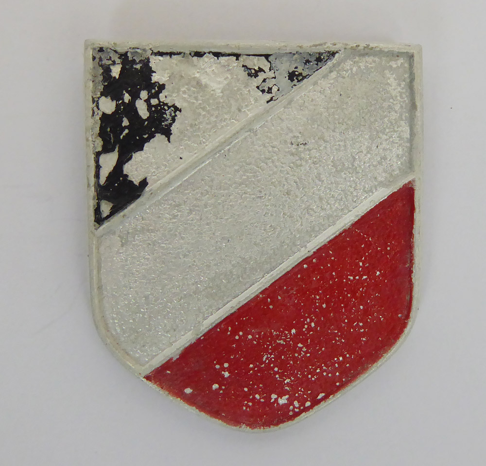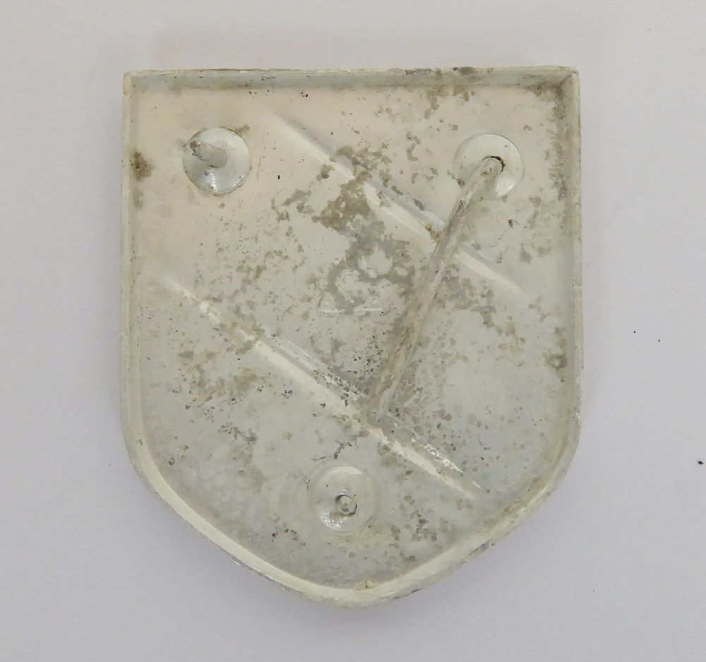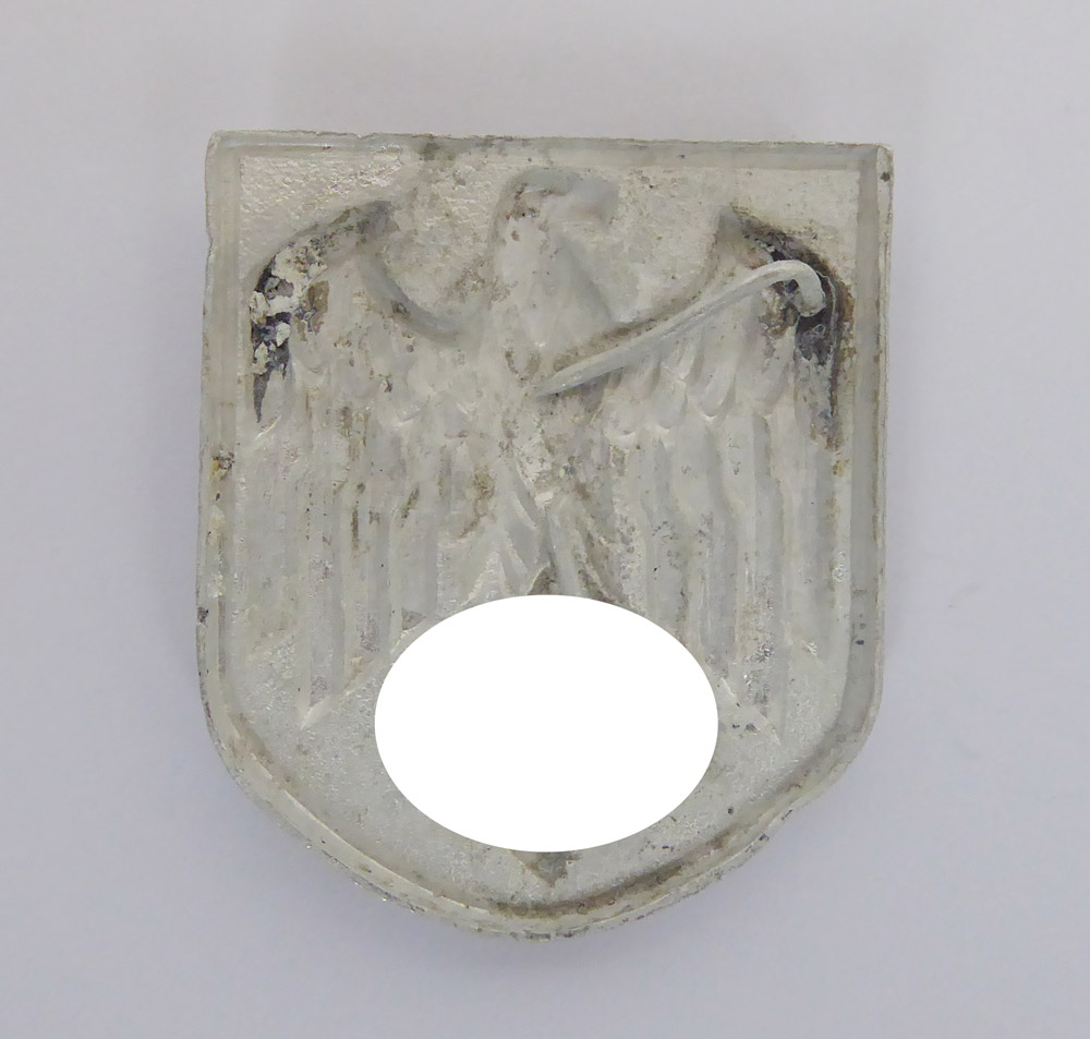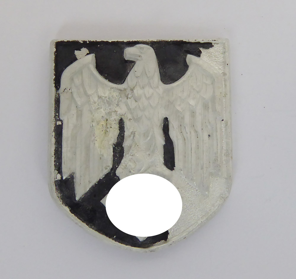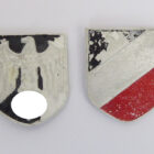 Satz Tropenhelm Embleme der Wehrmacht, gefertigt aus Aliminium lackiert in schönem Zustand, mit eiern herrlichen Patina wie abgebildet, die Splinte teilweise defekt, wie zu sehen.
