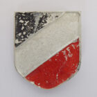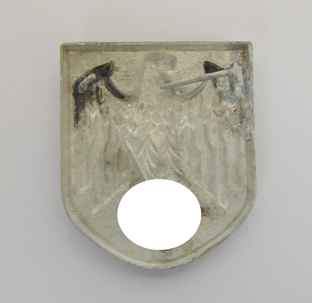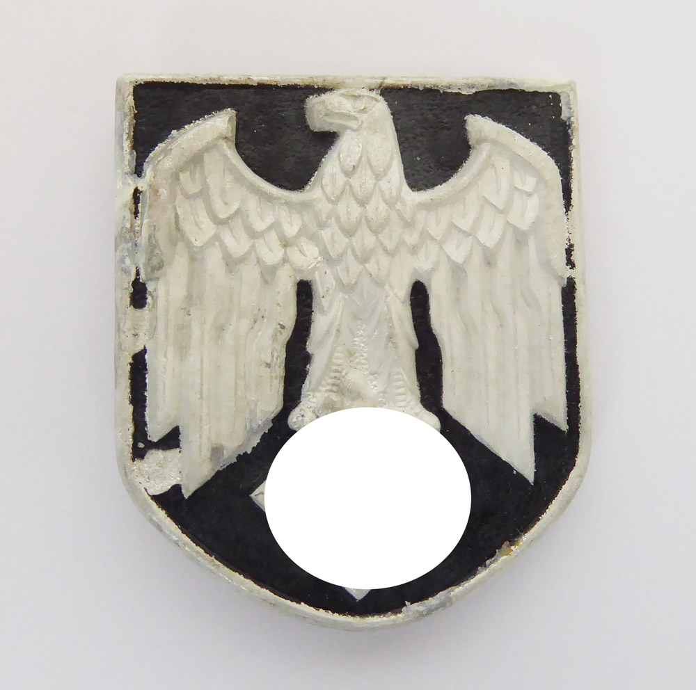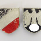 Satz Tropenhelm Embleme der Wehrmacht, gefertigt aus Aliminium lackiert in schönem Zustand, mit eiern herrlichen Patina wie abgebildet, die Splinte teilweise defekt, wie zu sehen.