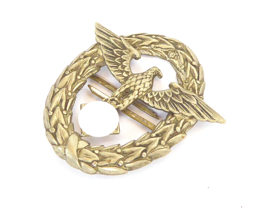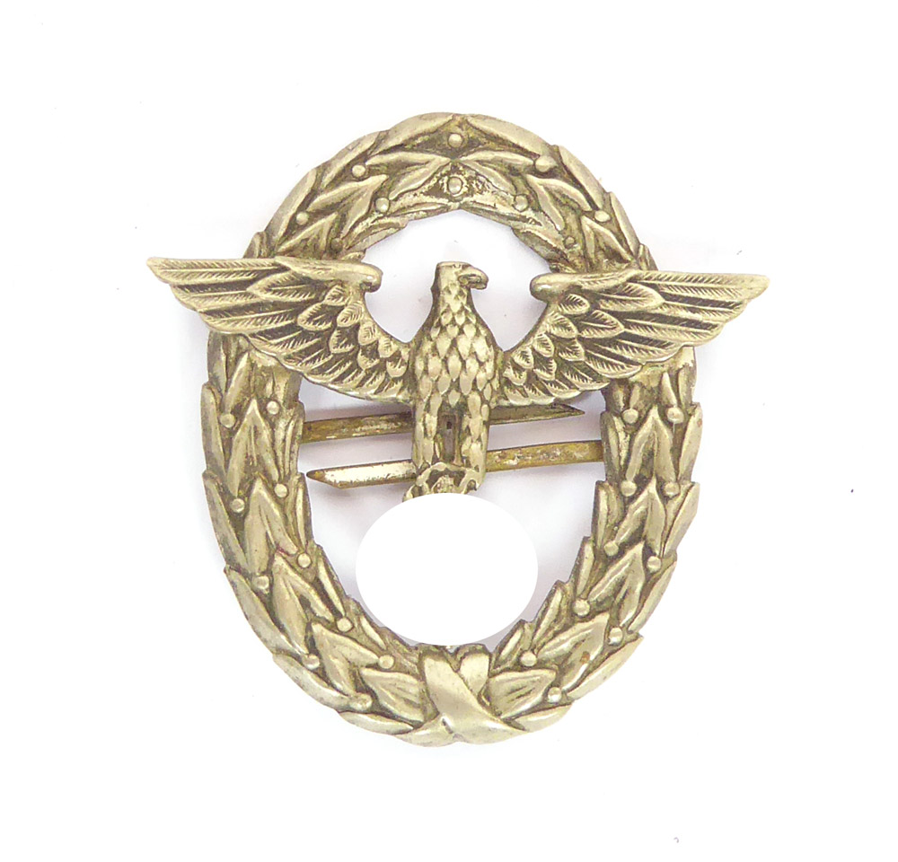 Schirmmützenadler Polizei, frühe Fertigung noch aus Buntmetall in sehr schönem nur leicht getragenem Zustand, wie abgebildet, mittlerweile auch nicht mehr häufig zu finden.
