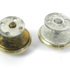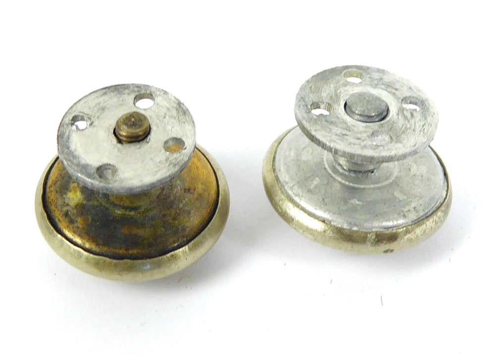 Zwei 16mm Schulterklappenknöpfe der Kriegsmarine zum Schrauben. Seltene Ausführung in Silber für Beamte, nicht ganz paarig.