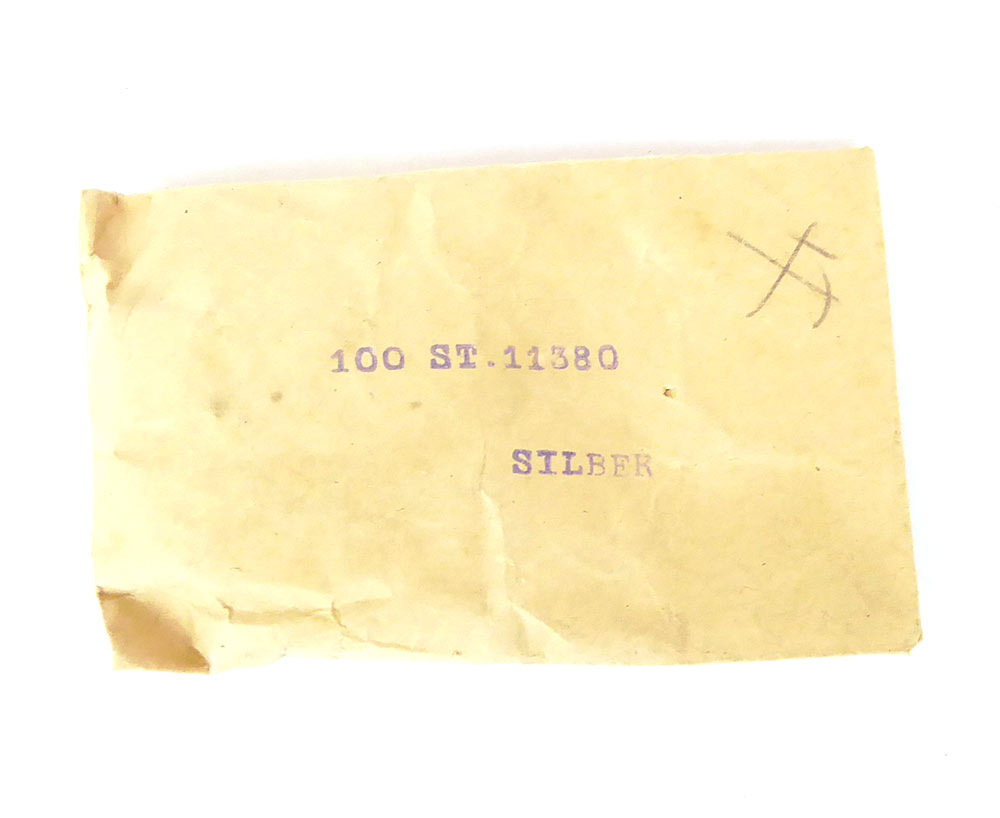 Schwertauflage für Bandspange, ungebrauchter Zustand direkt aus Herstellertüte. Hier versilberte Ausführung, Splinte vollkommen intakt. Misst ca. 14mm von Schwertgriff zu Schwertgriff. Preis gilt für 1 Stück aus der Verpackung!