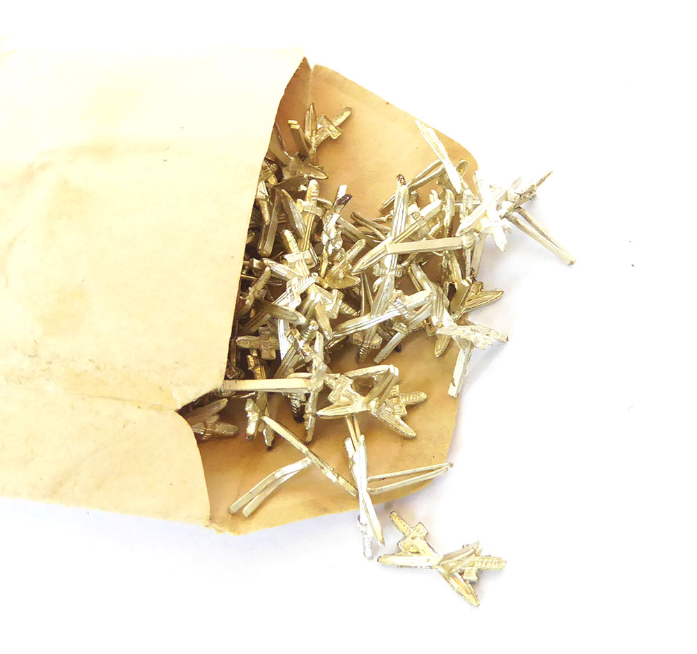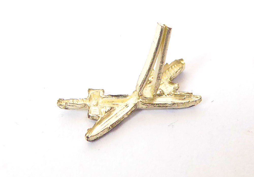 Sword support for ribbon clasp, unused condition directly from the manufacturer’s bag. Here silver-plated version, pins completely intact. Measures approx 14mm from sword hilt to sword hilt. Price is for 1 piece out of the packaging!