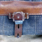 Spätkriegstornister der Luftwaffe für Sanitäter (Rotes Kreuz wurde leider entfernt), es wurden sehr interessante „Ersatz“ Materialien verwendet. Der Essgeschirrbeutel und der Verstärkungsriemen sind noch vorhanden. Der Zustand ist sehr gut ( Fast neuwertig! ), Leder ist noch schön braun. Rückseitig und beide Riemen mit jhq 44 / WaA gestempelt.