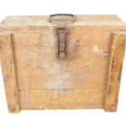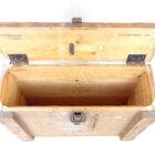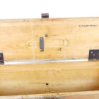 Transport box from the First World War, probably for ammunition in very good condition. With eyelets on the back, I think for a carrier like mouli or hors to hook it into a frame. Inside the lid with the manufacturer’s stamp and probably a troop stamp on the right side.