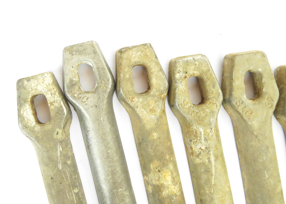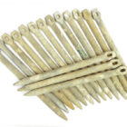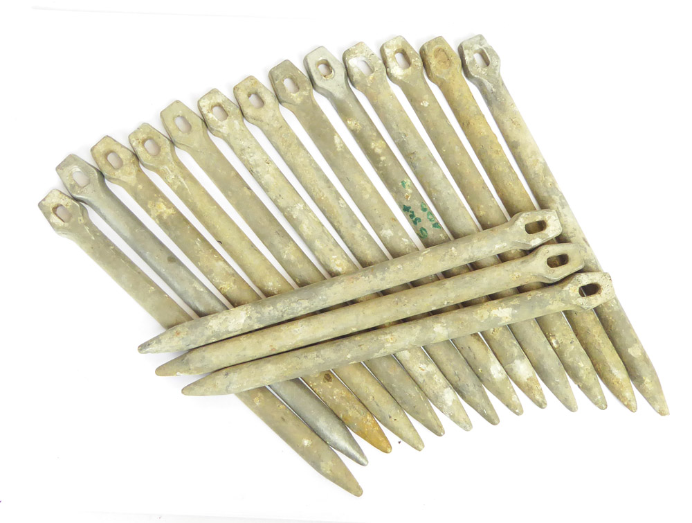 Zelthering der Wehrmacht gefertigt aus Aluminium mit Hersteller Stempel S&C 37, manche auf der Vorderseite andere auf der Rückseite vom Kopf gestempelt, wie abgebildet. Sie sind in gebrauchtem Zustand und etwas dreckig, so wie abgebildet. Der preis ist für 1 stück.